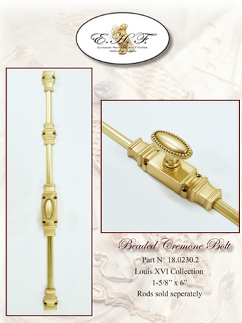 Cremone bolts made in France. Other cremone bolts are available in the Croft Architectural Hardware Catalog.